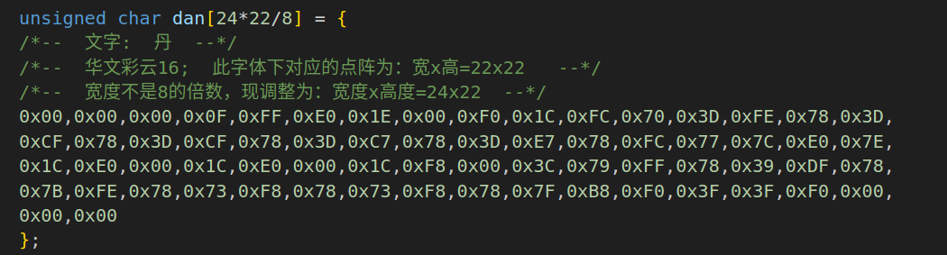 复制字模软件生成的取模点阵,按照下面格式写成数组