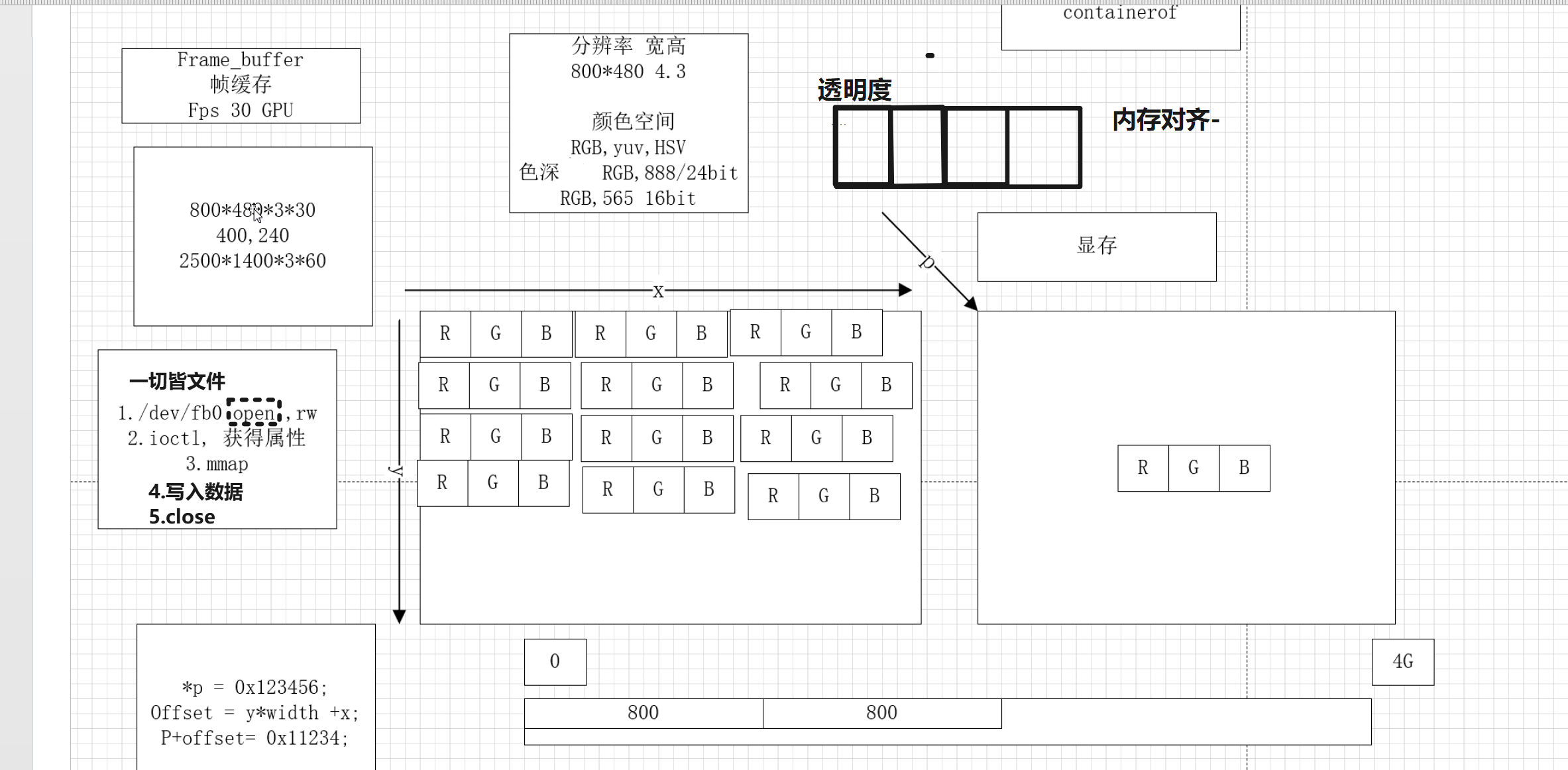 实际屏幕对应一块显存,内存映射过来是一个长条,应用不能直接操作硬件,linux,驱动,合法手段内存映射mmap;如图所示
