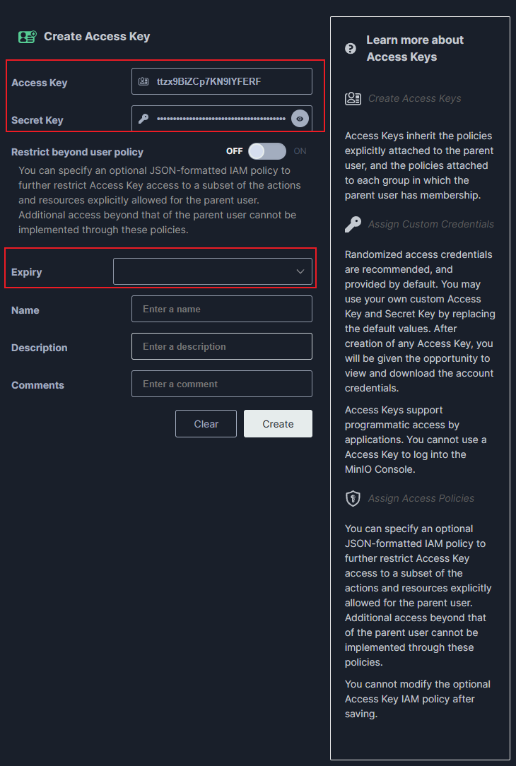如果你需要修改 MinIO 的配置,可以直接修改/opt/docker/minio/config 目录下的配置文件。MinIO 支持通过环境变量配置许多功能,例如设置根用户、密码、访问密钥等。