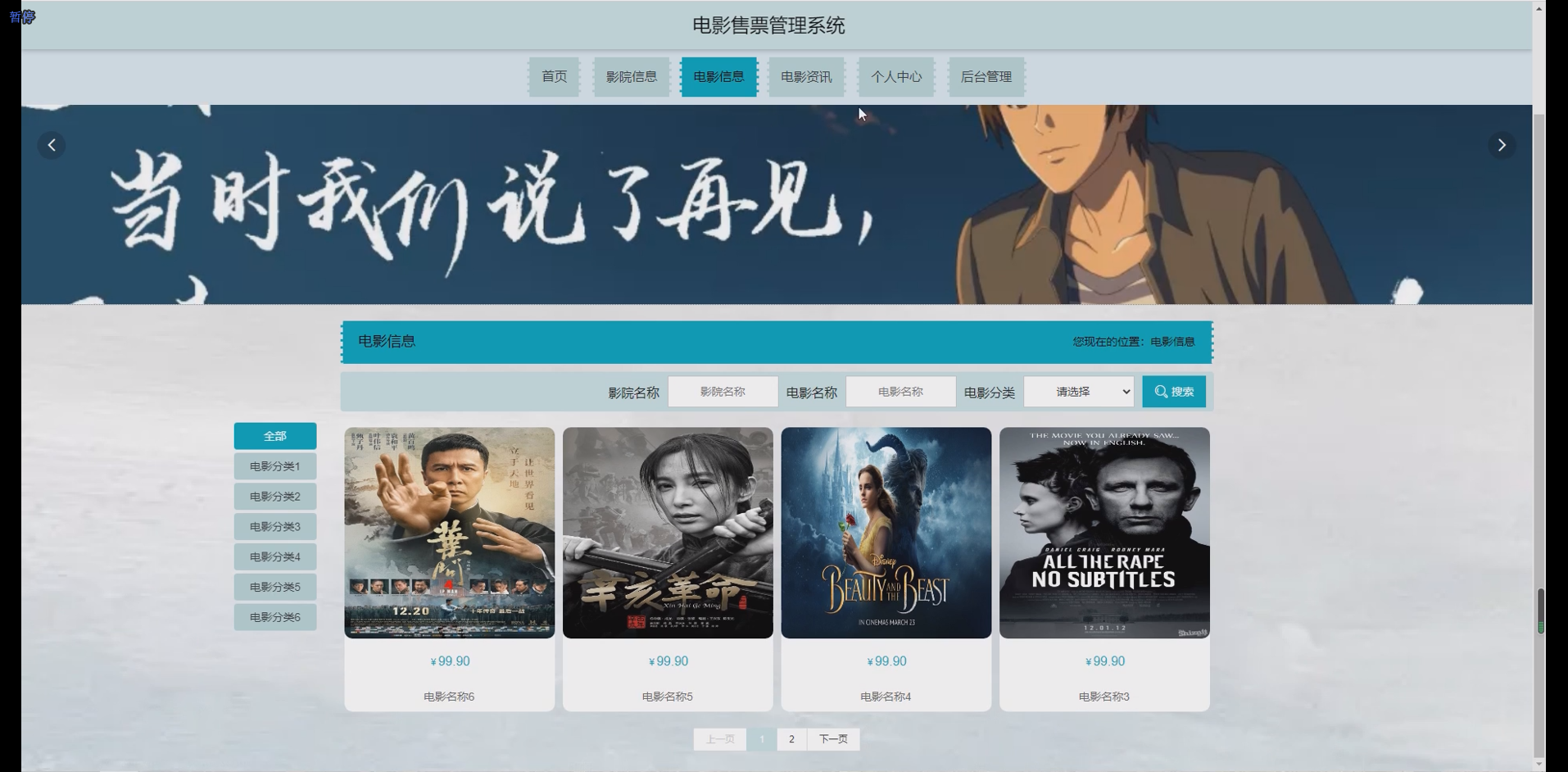 依托 SSM 框架,开发一款功能完善、操作便捷、性能稳定的电影售票管理系统,实现用户管理、影院信息管理、电影分类管理、电影信息管理、评分信息管理等核心功能,满足用户在线购票与影院高效管理的需求,提升电影售票行业的数字化服务水平。