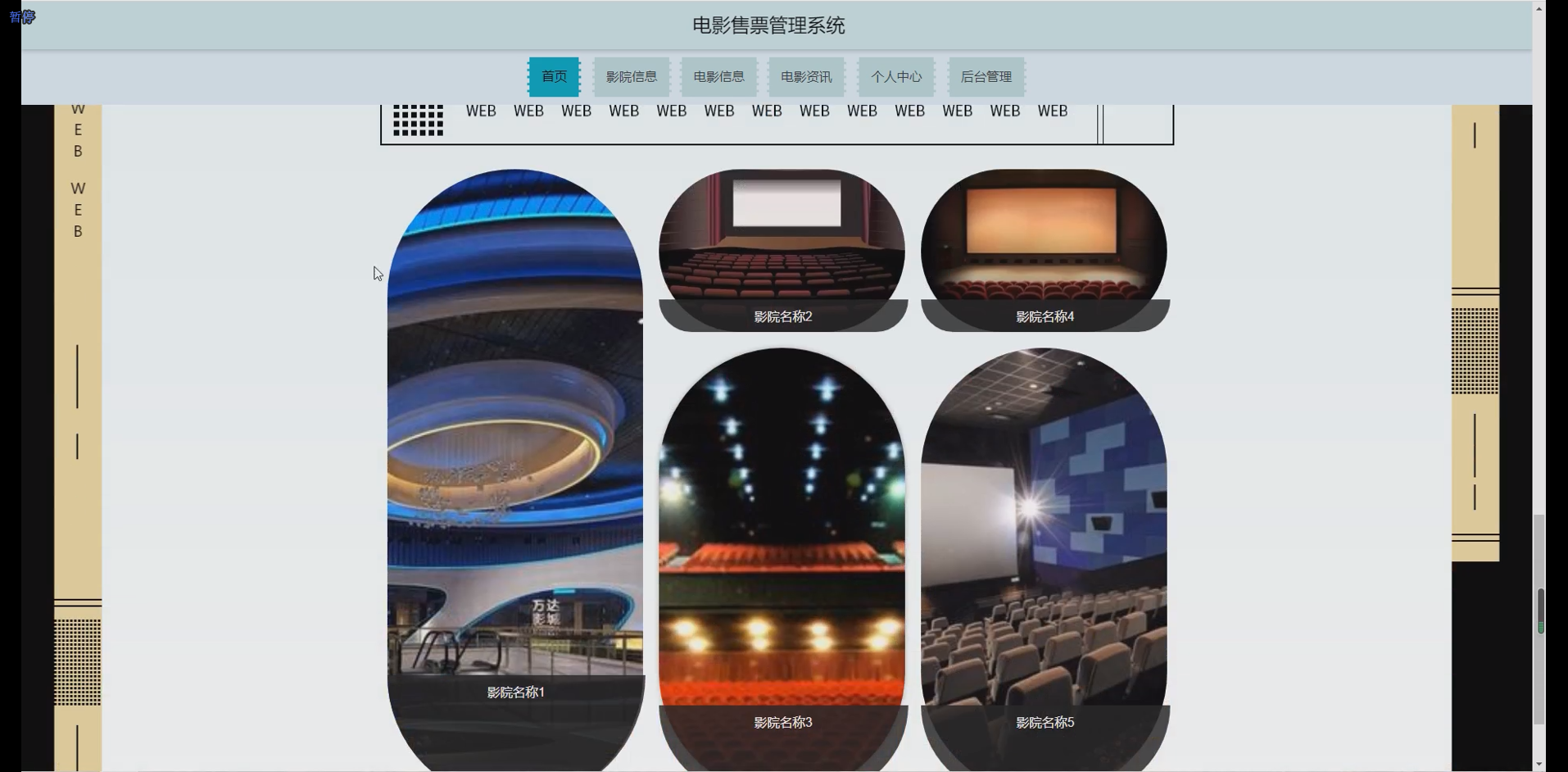 - 影院信息管理模块:管理员可添加、编辑、删除影院信息,设置影院营业状态;用户可按地区、影院名称搜索影院,查看影院地址、联系方式及座位分布情况。