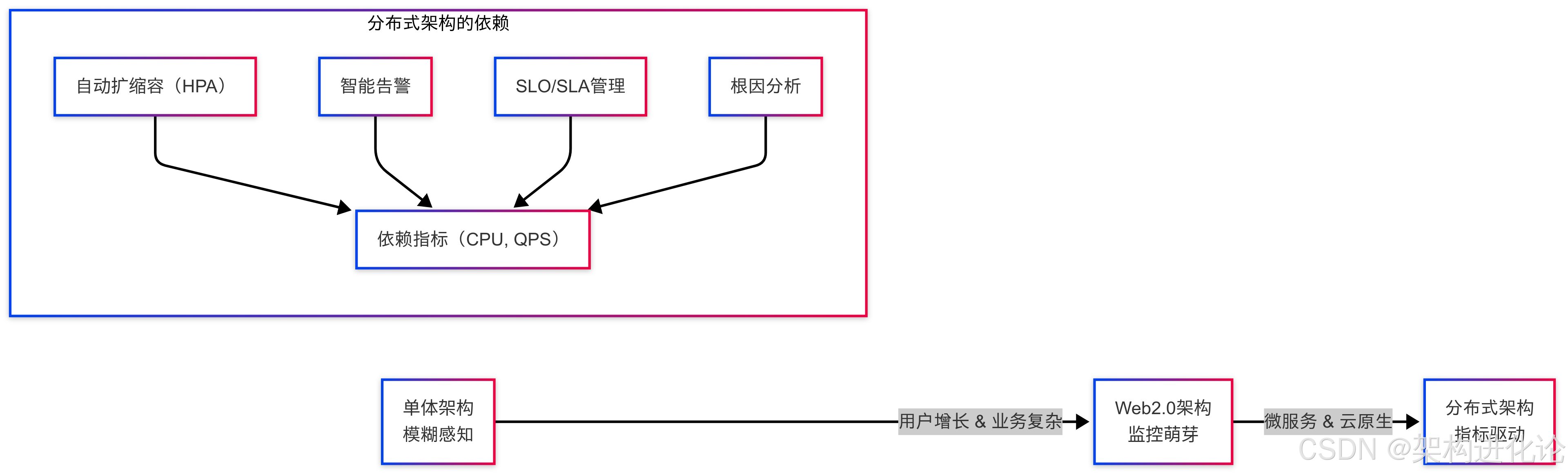 结论:技术的演进,从单体到分布式,使得系统的内在复杂性呈指数级增长。在这种环境下,依靠人的经验和模糊的定性描述来管理和运维系统是完全不可能的。量化指标成为了我们理解、掌控和管理这个复杂分布式系统的“仪表盘”和“神经中枢”,它使得自动化、智能化的运维成为可能。