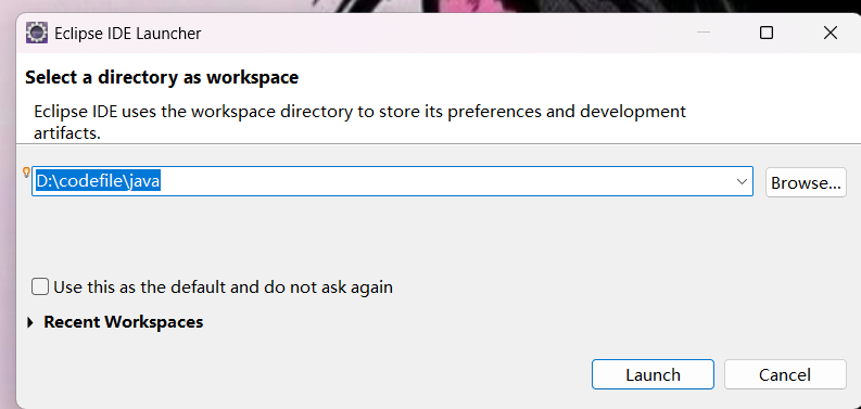 双击Eclipse.exe运行,会要求选择工作空间(自行选择文件夹,非必要不更换),点击“launch”