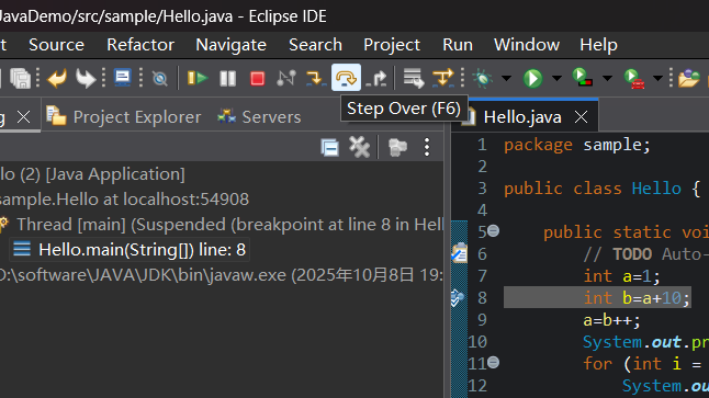 当我们鼠标悬停在b变量上方时也会显示b值,或者右侧也会显示执行过的变量值