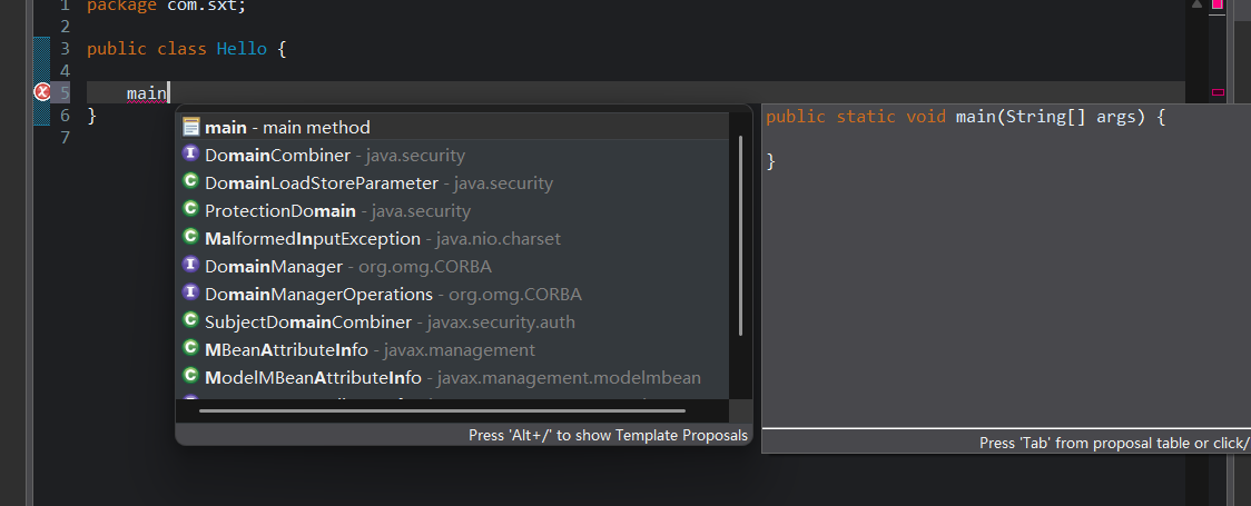 先写一个main()方法,输入“main”,再双击“ALT+/”,点击“回车”,可以快捷创建