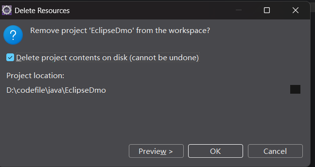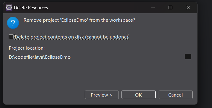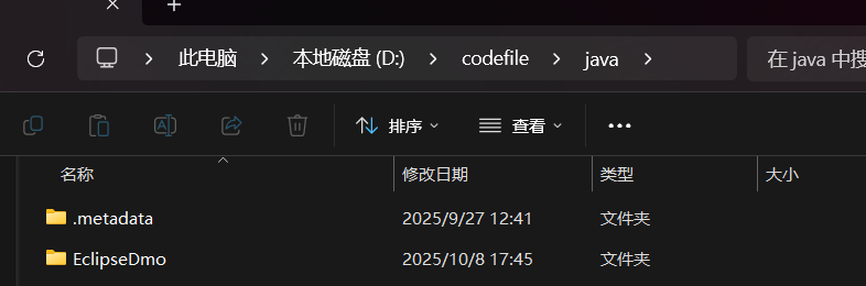 但打开我们的工作空间文件夹,可以看到项目“EclipseDemo”依旧存在在我们的磁盘下(D盘)