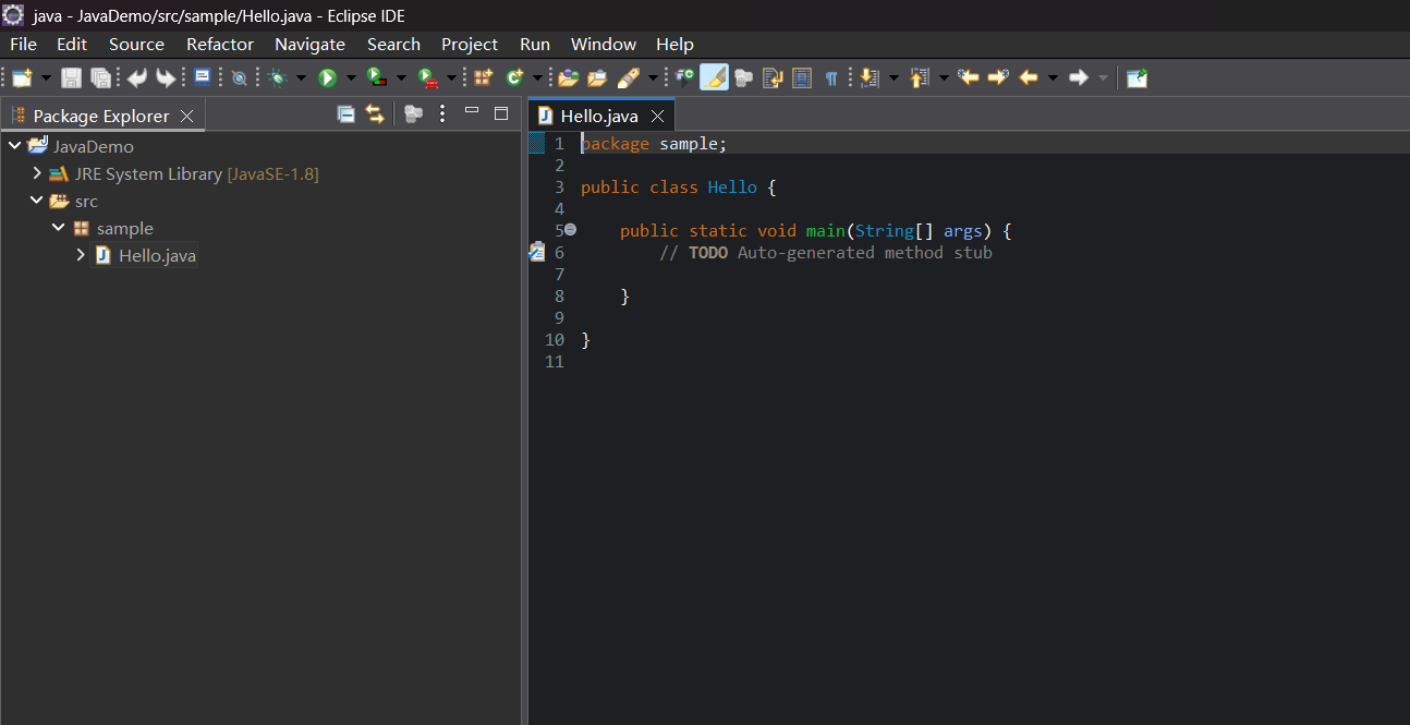 点击我们新建的项目,可以看到下面有两部分内容,“JRE System Library”是运行时环境,"scr"文件夹则是我们写源码的地方