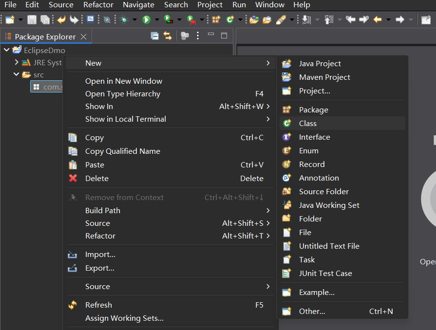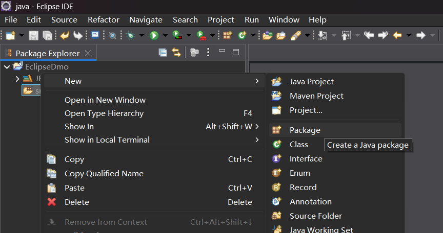 我们可以先创建一个包再写源码,右键"scr","new"一个“Package”