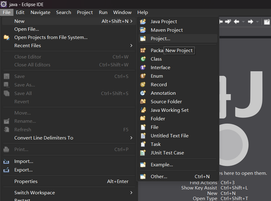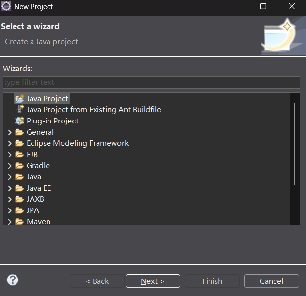 点击“FIle”,“New”一个新的“Project”,选择“Java Project”,输入项目名称,点击“Finish”