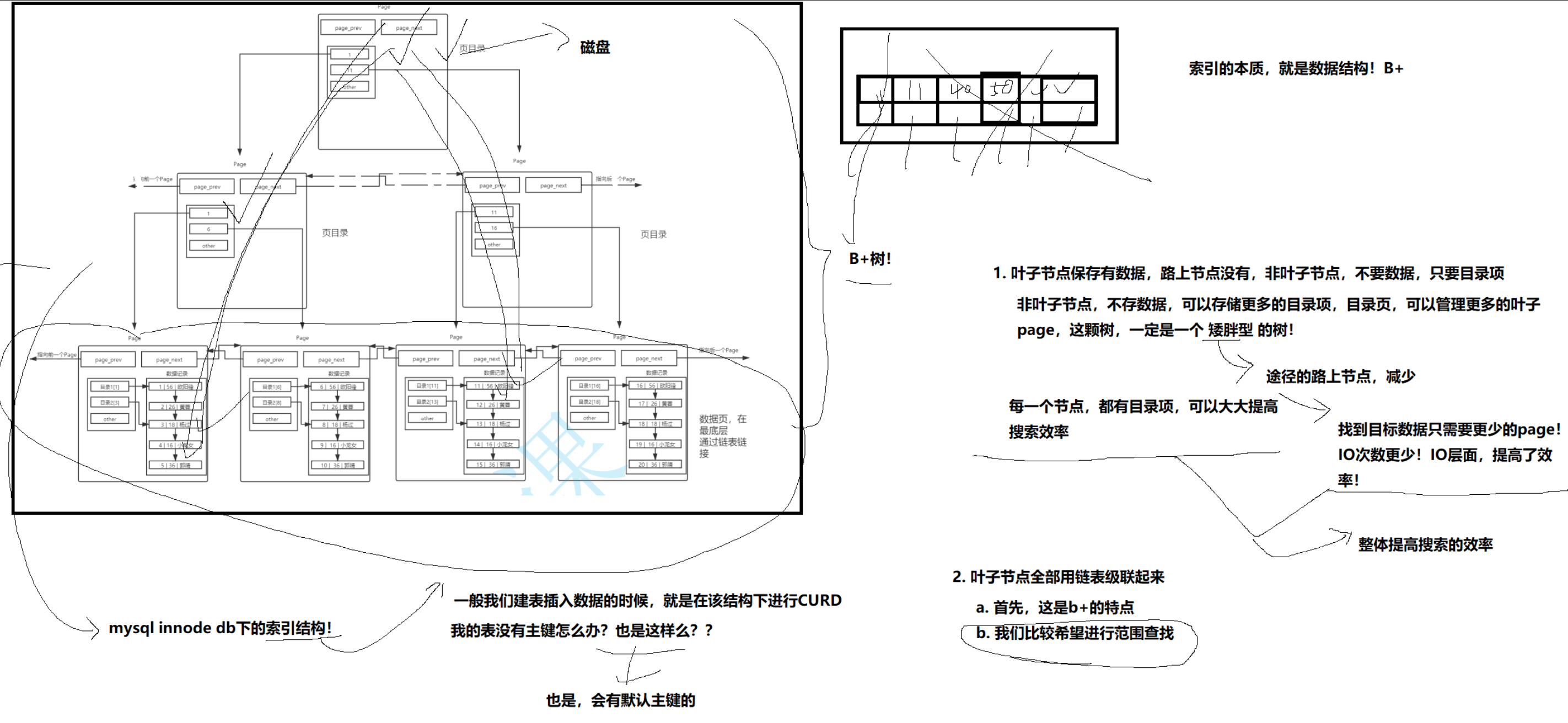 2.叶子节点全部用链表级联起来原因