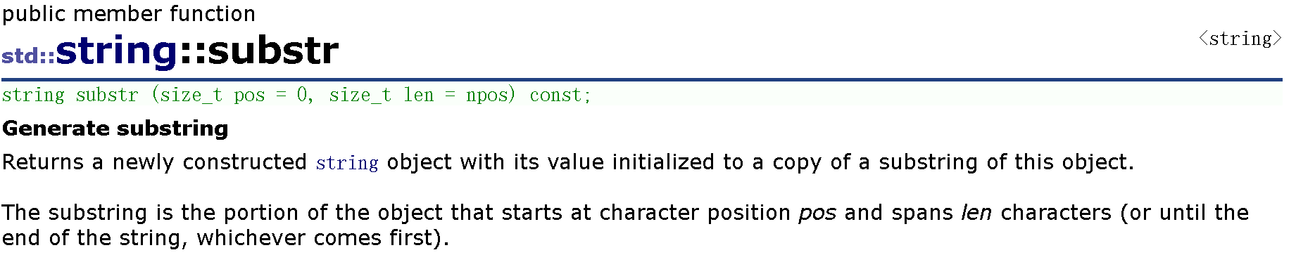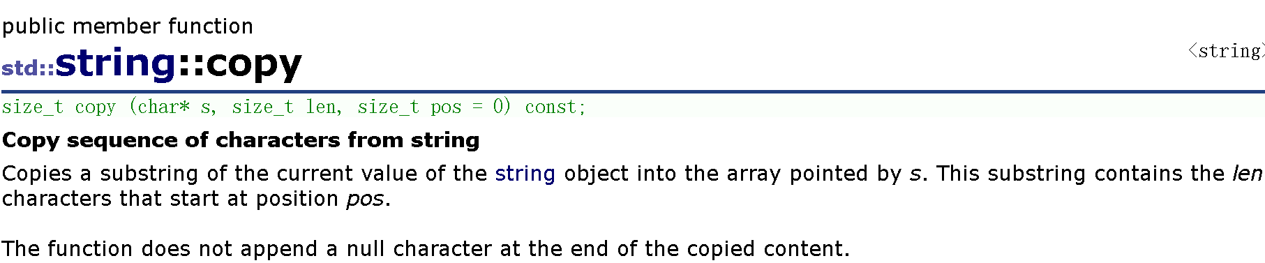 与copy不同,substr直接返回一个被创建好的string类型的值。不需要传指针参数。