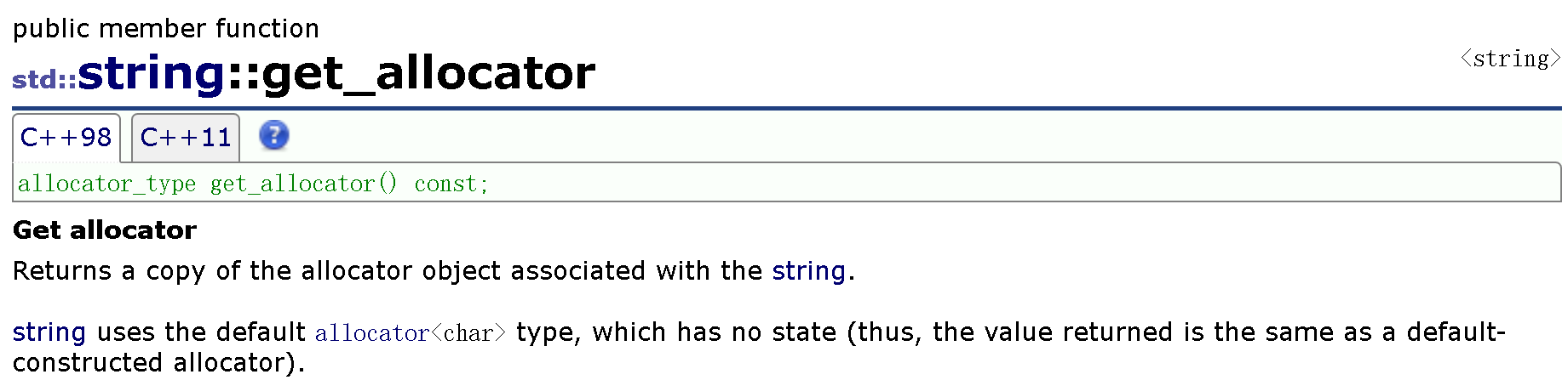 在stl库中,申请内存一般不直接通过new而是向内存池申请,get_allocator()可用于查找对象申请的空间对应的内存池。