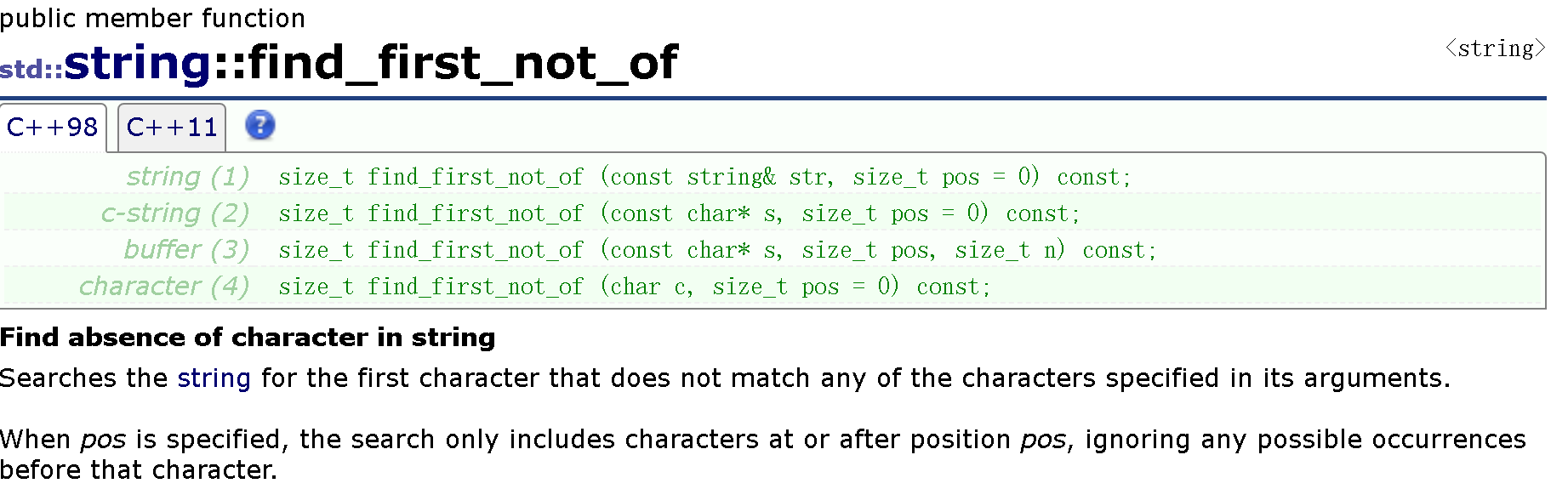 find_first_not_of,只要被查找的字符串中的字符没有在查找列表中出现,就会返回它的pos。