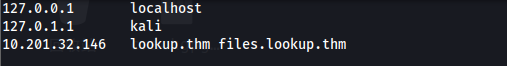 然后到 80 端口查看,发现跳转到 lookup.thm,那么就需要到/etc/hosts 文件中配置一下
