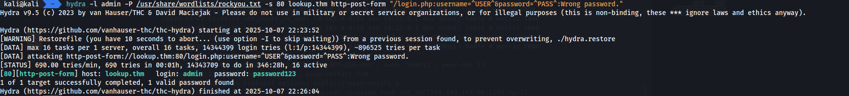 ffuf -w /usr/share/wordlists/seclists/Usernames/xato-net-10-million-usernames.txt -X POST -u http://lookup.thm/login.php -d "username=FUZZ&password=" -H "Content-Type: application/x-www-form-urlencoded"