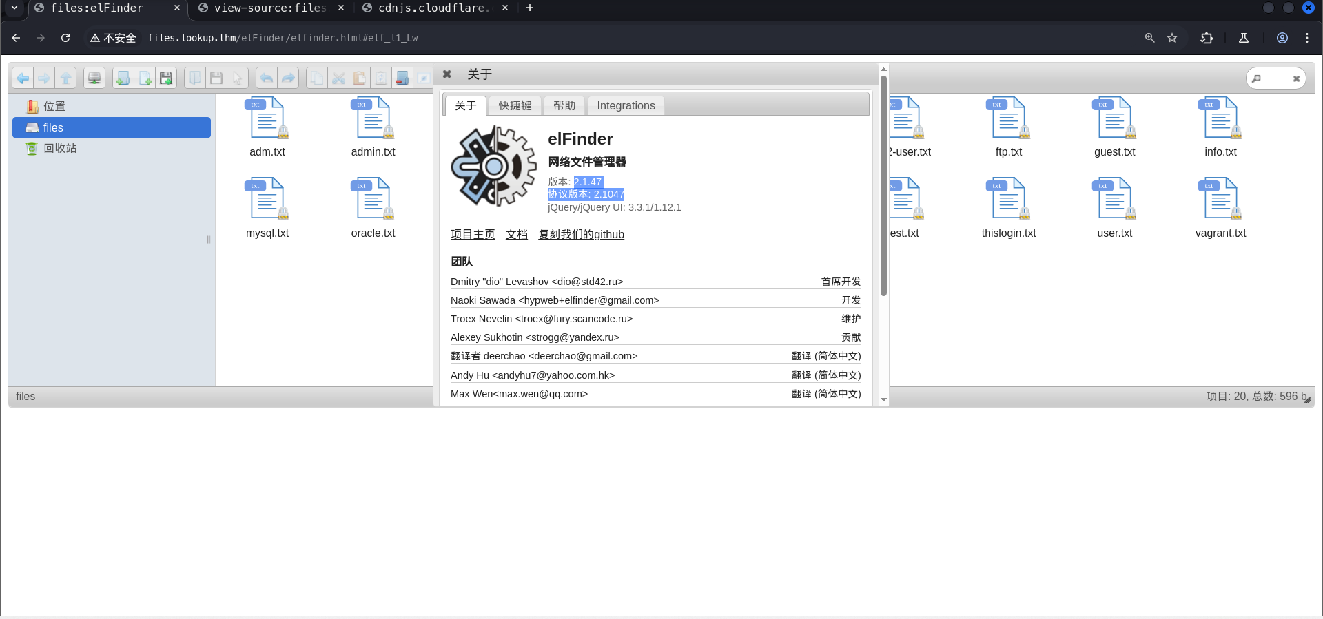 然后去登录发现还是提示密码和账户错误,这时候把账户换成 jose 就可以登录进去了,发现一个子域名 files.lookup.thm,把这个也添加到 hosts 文件中访问,发现是一个 elFinder