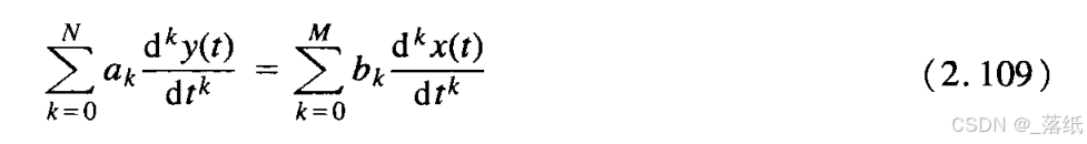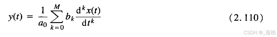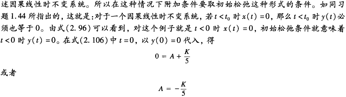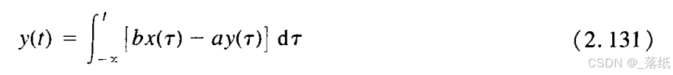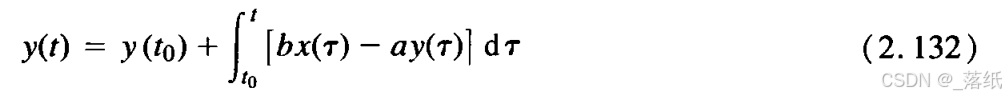 然后从-∞到t积分。若假设由式(2.130)描述的系统是初始松弛的,那么dy( t)/dt从-∞到t的积分就是y(t),因为y( -∞)的值是零,结果可得: