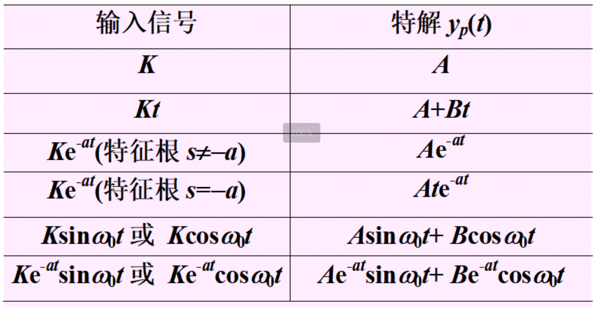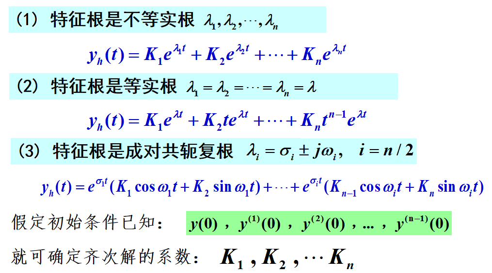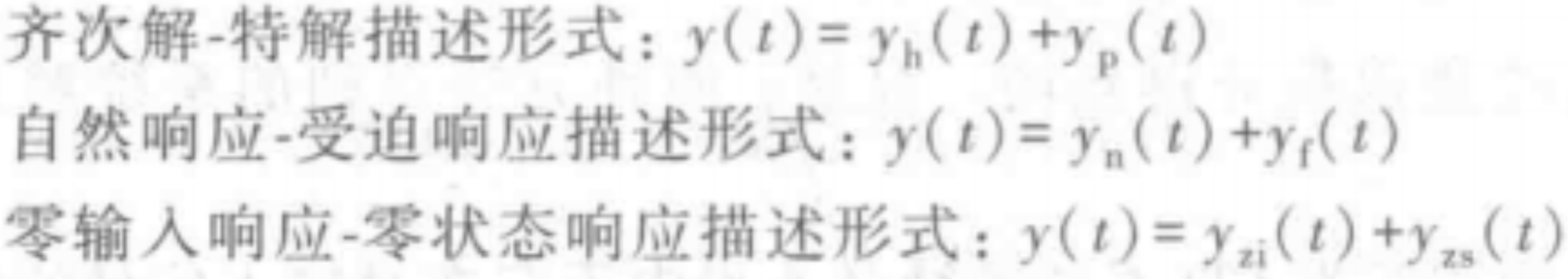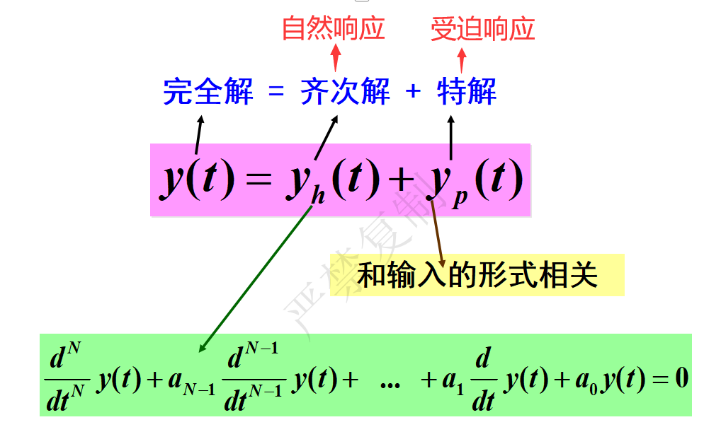 系统的全解:齐次解yh(t)、特解yp(t)。