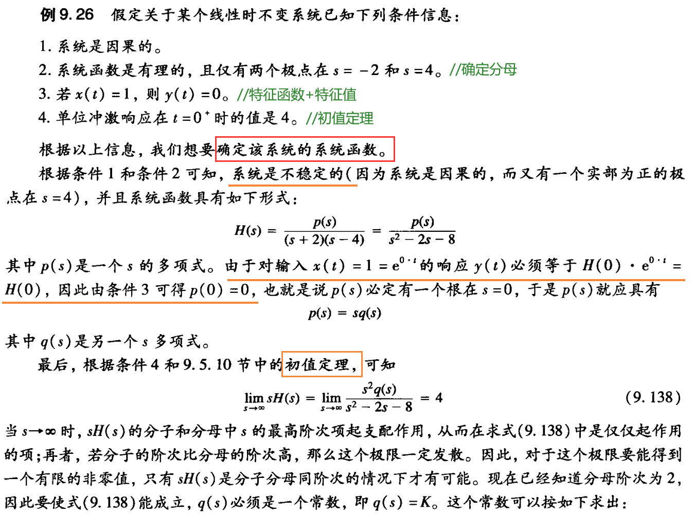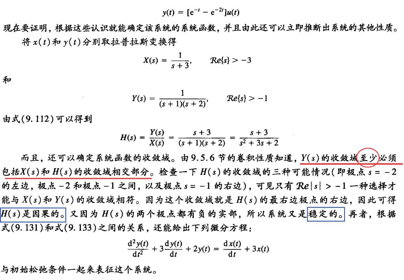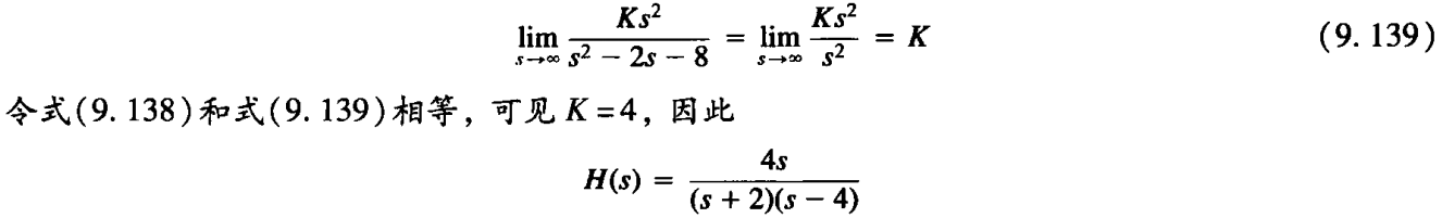 - 和前面的讨论一样,式(9.133)并没有包括H(s)收敛域的说明,因为该线性常系数微分方程本身没有限制收敛域。