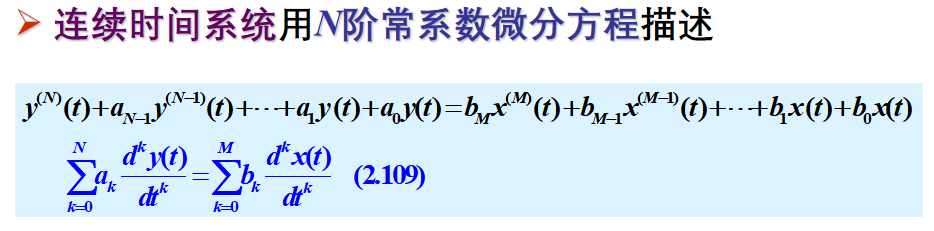 - 一类重要的连续时间系统:输入输出关系用线性常系数微分方程描述的系统。