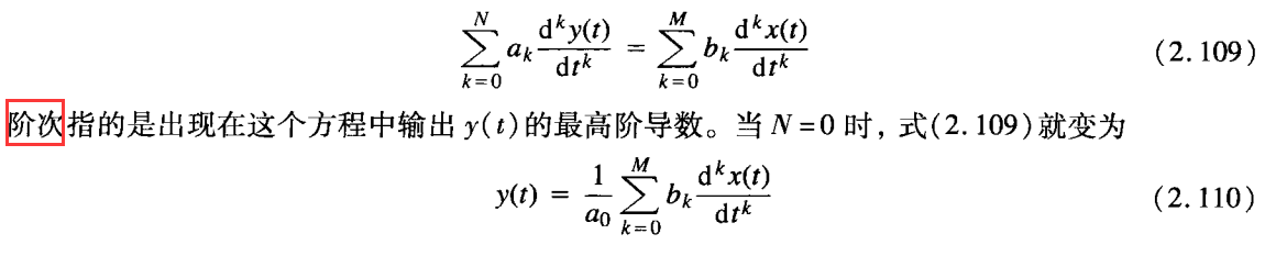 阶次:指的是出现在这个方程中输出y(t)的最高阶导数。