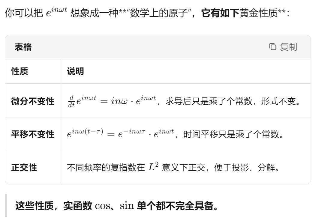 - 复杂的周期函数可以用简单周期函数的线性组合来表示。