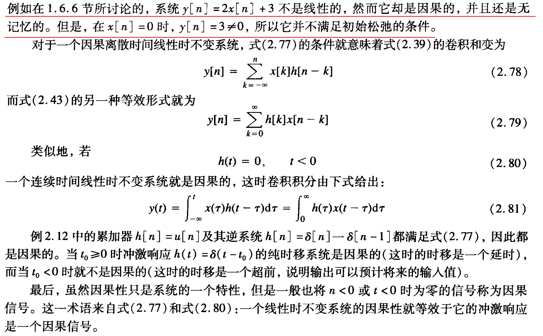 1.6.3节已经介绍过因果性质:即一个因果系统的输出只取决于现在和过去的输入值。