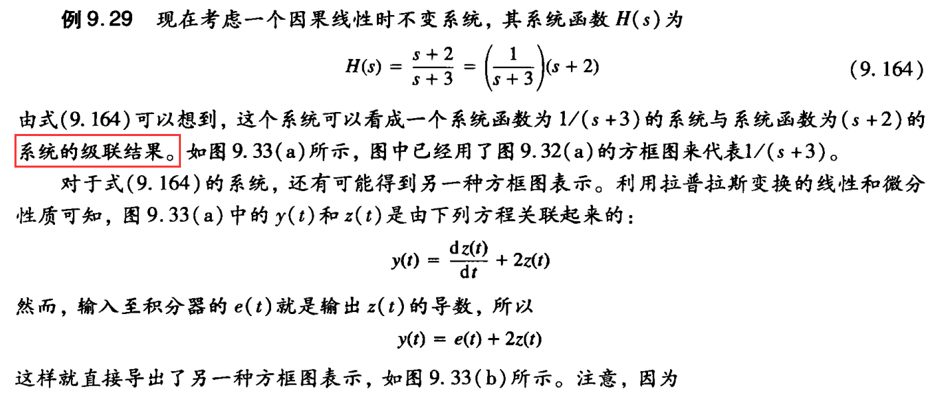 通过代数运算,在表示线性系统的互联时,利用拉普拉斯变换,可以扩展到远比图9.30这种简单