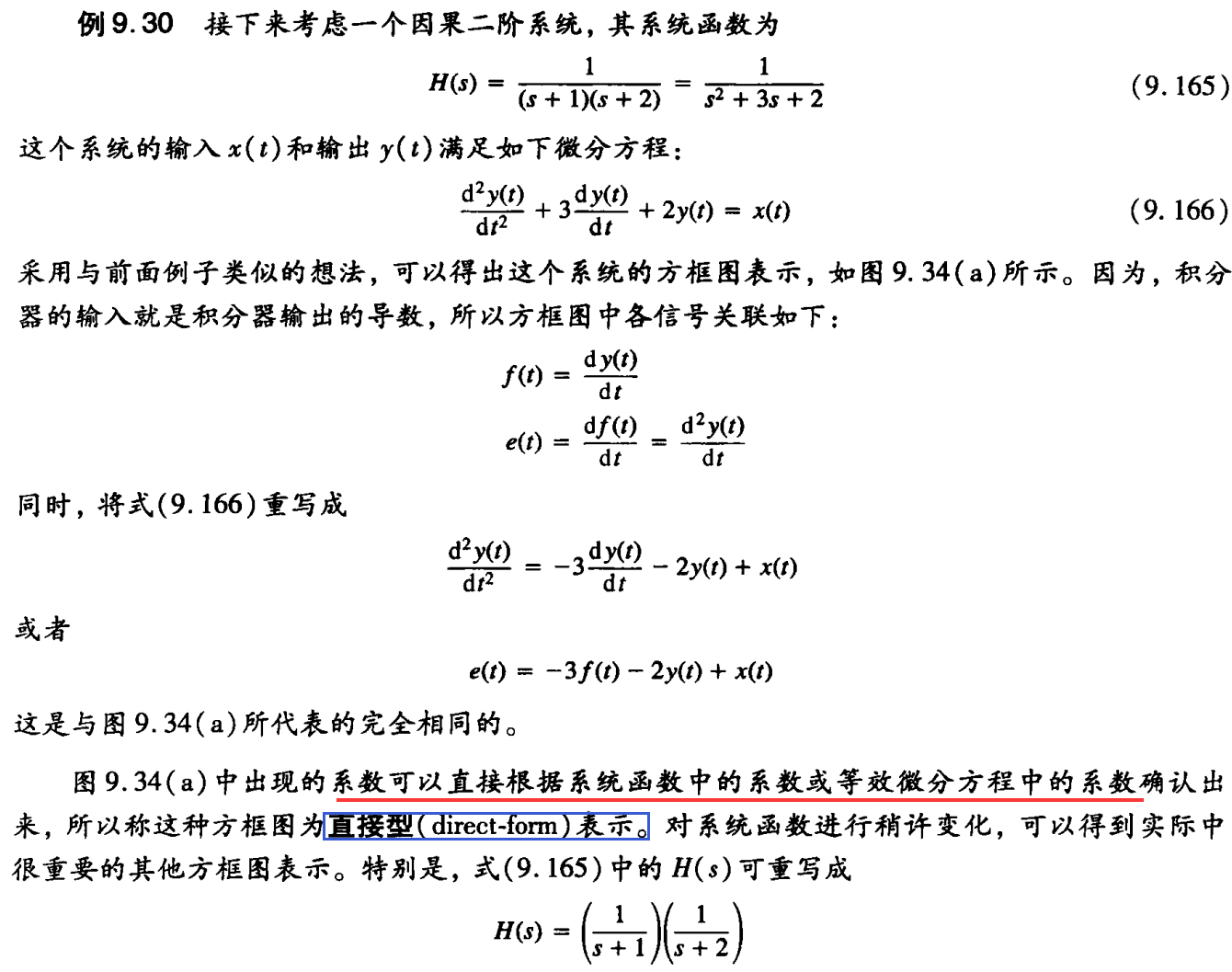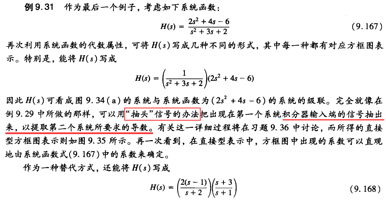 在例9.23中,由微分方程得到H(s)的过程可以应用到更一般的情况。