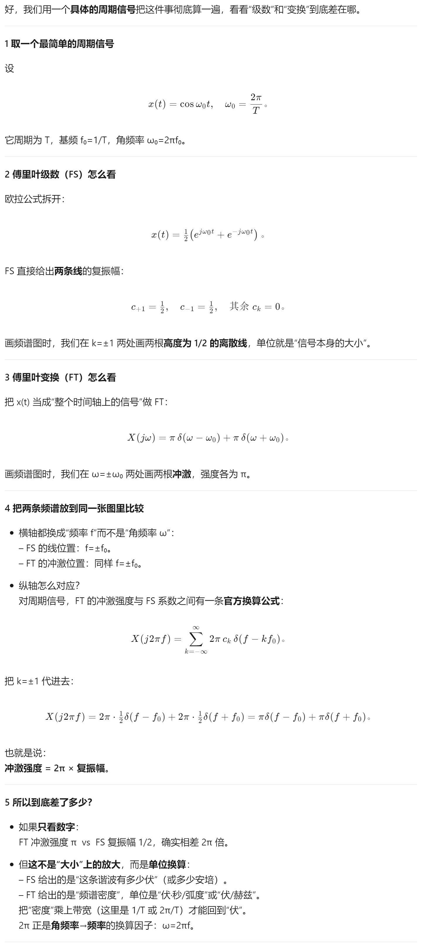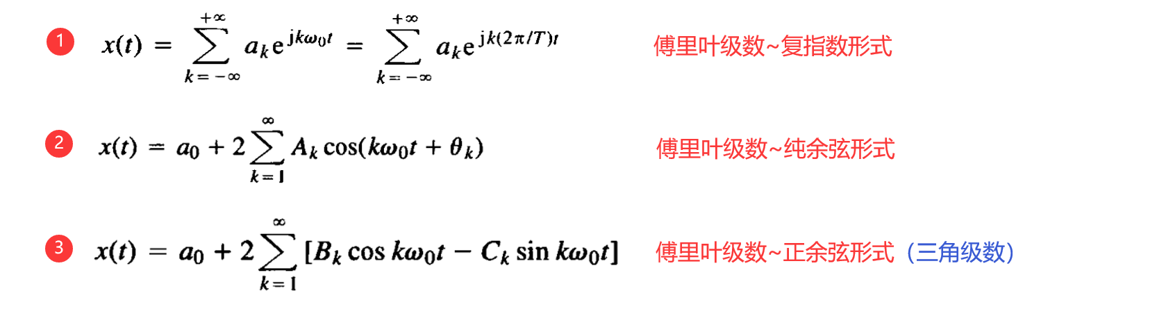 周期函数x(t) = x(t + T)的傅里叶级数展开——三种形式: