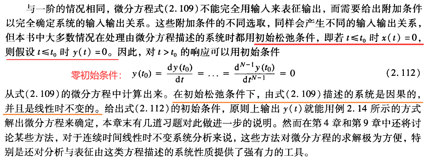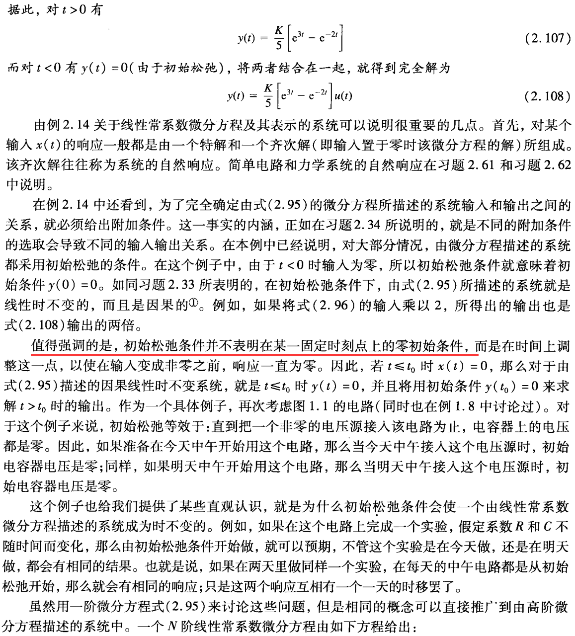 本书的绝大部分都关注的是将微分方程用于描述因果线性时不变系统,而对这样一类系统,附加条件是取一种特殊而简单的形式——初始松弛条件。
