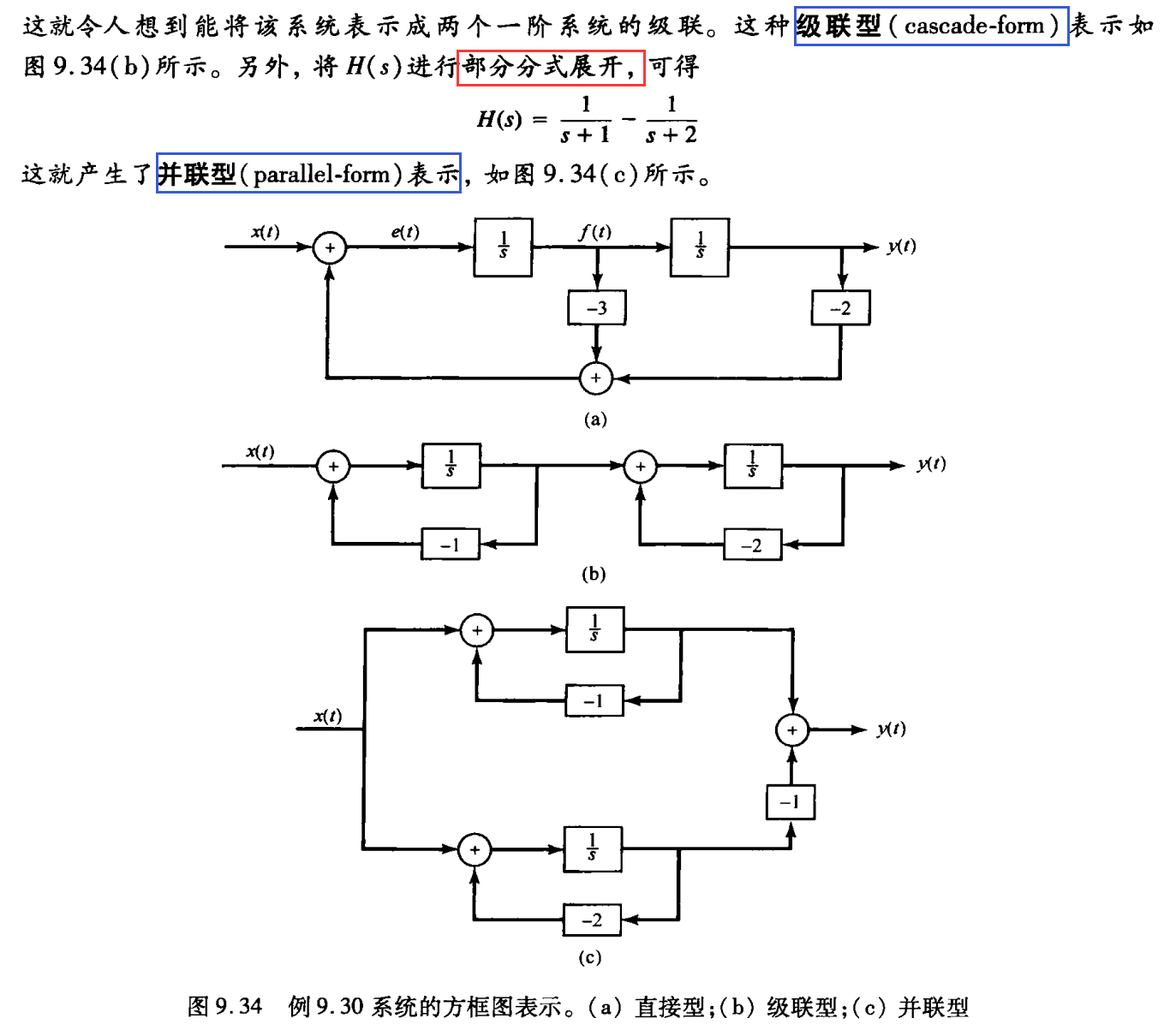 这一节将要讨论系统函数代数属性的另一个重要应用,即通过分析线性时不变系统的互联,及基本系统的构造单元的互联,来综合出复杂系统中的应用。