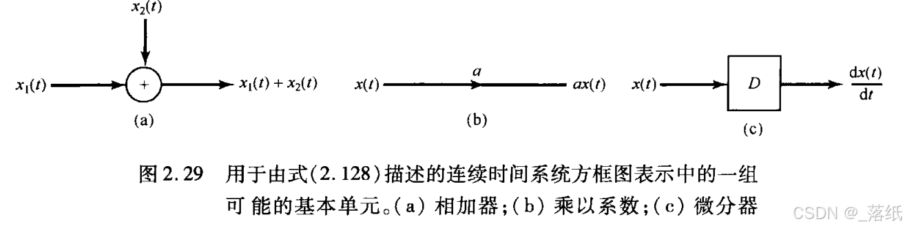 由线性常系数差分和微分方程描述的系统的一个重要的特点是:能以很简单而且很自然的方式用若干基本运算的方框图互联来表示。