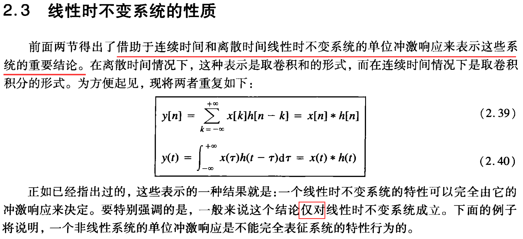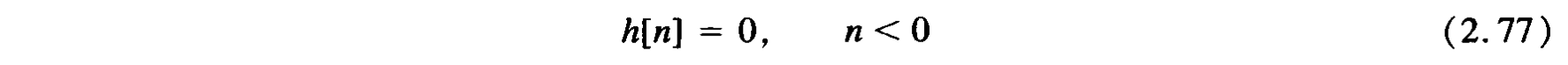 由式(2.39)可以看出,为此乘以x[k]的所有系数h[n-k]对于k>n都必须为零,那么这就要求因果离散时间线性时不变系统的冲激响应满足下面条件:
