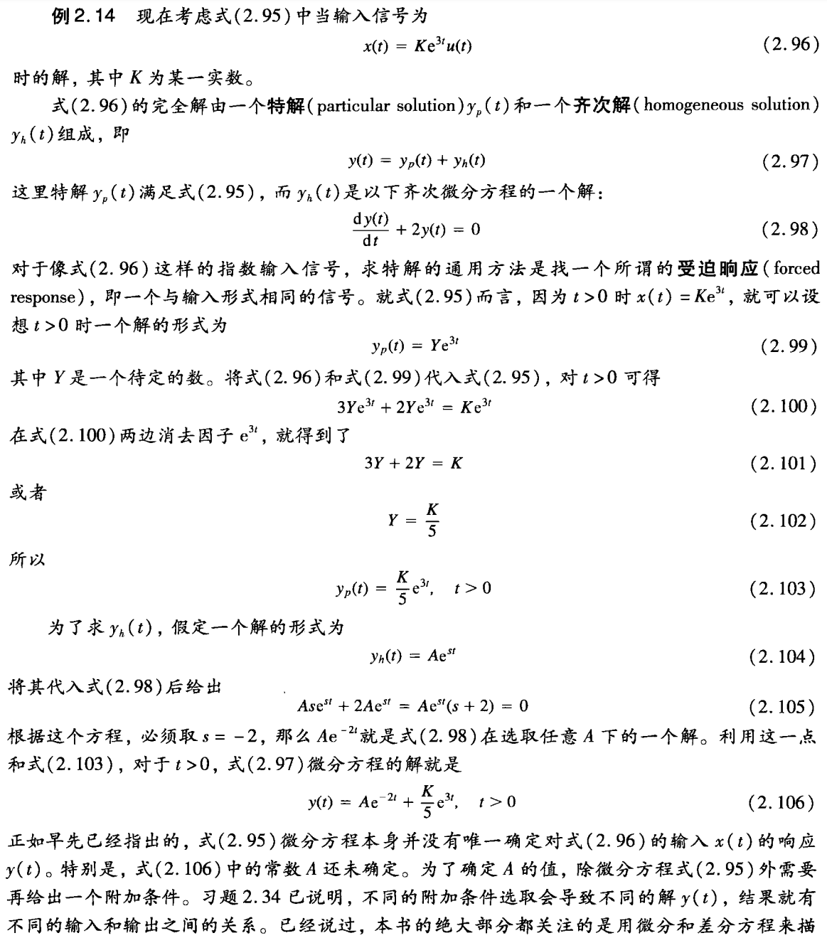 这一节只是介绍这类系统在涉及微分和差分方程解法上的一些基本概念,并揭示和剖析由这类方程所描述的系统的某些性质。在以后的各章中,将要继续深入研究。
