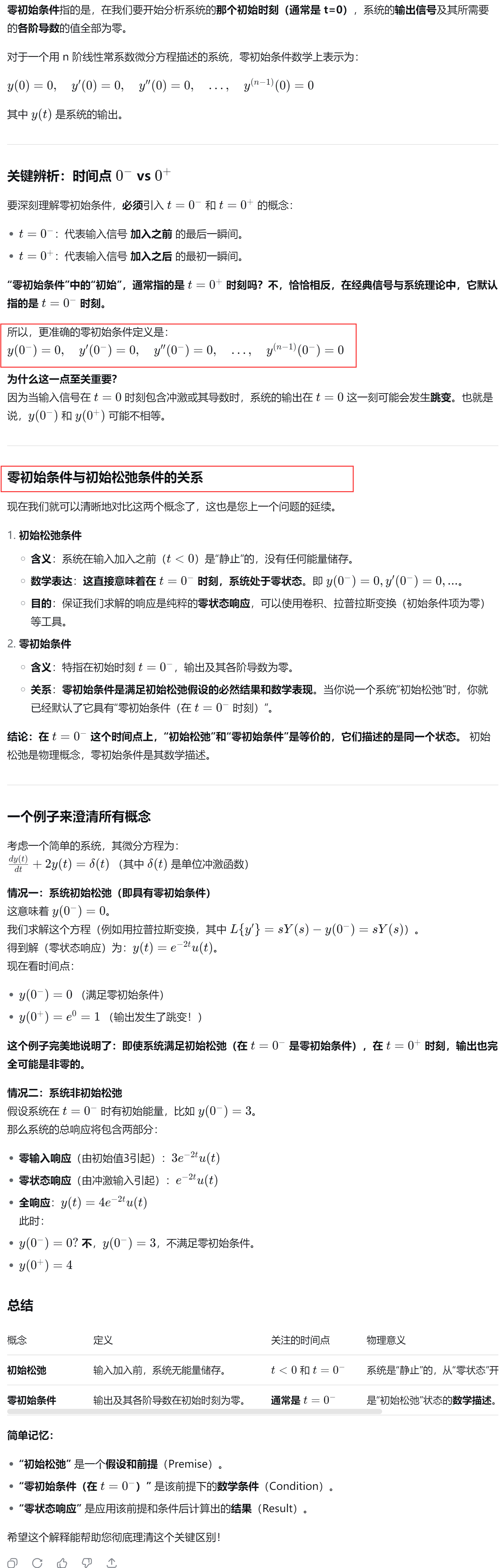 一个线性系统的因果性就等效于初始松弛(initial rest)的条件;