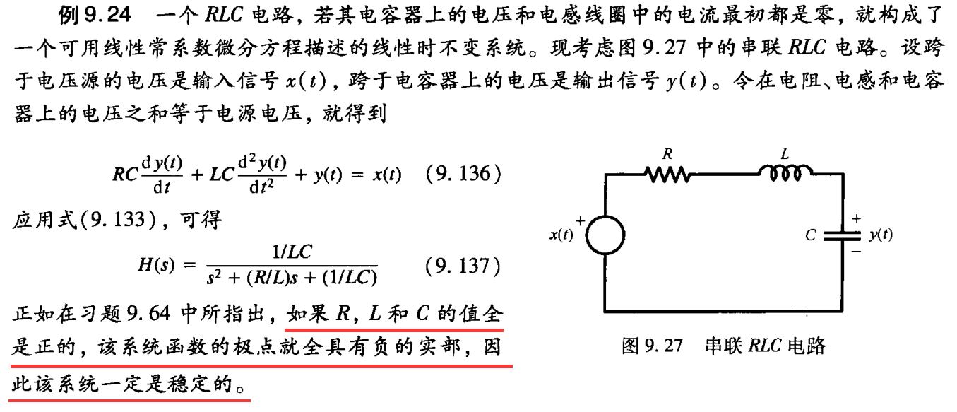 具体而言,考虑一个因果线性时不变系统,具有有理系统函数H(s),因为系统是因果的,收敛域就在最右边极点的右边,因此这个系统若是稳定的,即收敛域包括jω轴,H(s)的最右边的极点就必须位于jω轴的左边,即