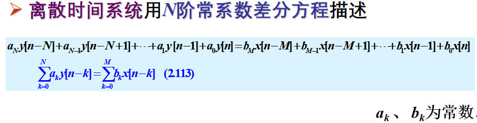 - 一类重要的离散时间系统:输入输出关系用线性常系数差分方程描述的系统。