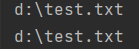 由于d:/../test.txt 就相当于是 d:/test.txt ,这个方法会把冗余的路径优化掉,返回优化后的路径。