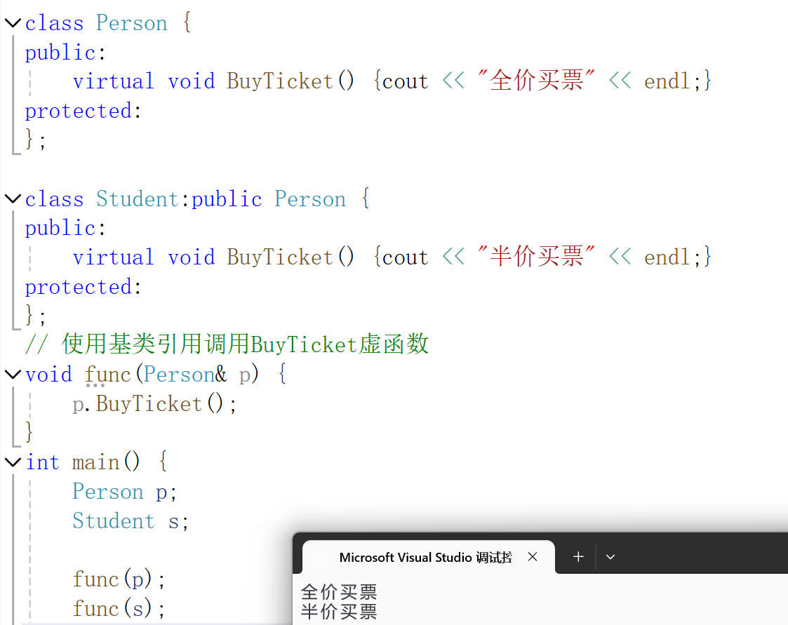 public:virtual void BuyTicket() {cout << "全价买票" << endl;}