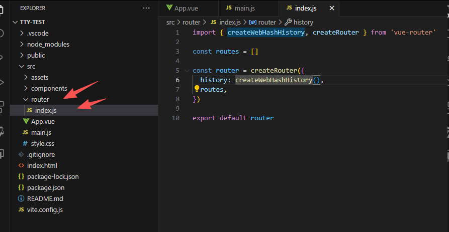 import { createWebHashHistory, createRouter } from 'vue-router'const routes = []const router = createRouter({history: createWebHashHistory(),routes,