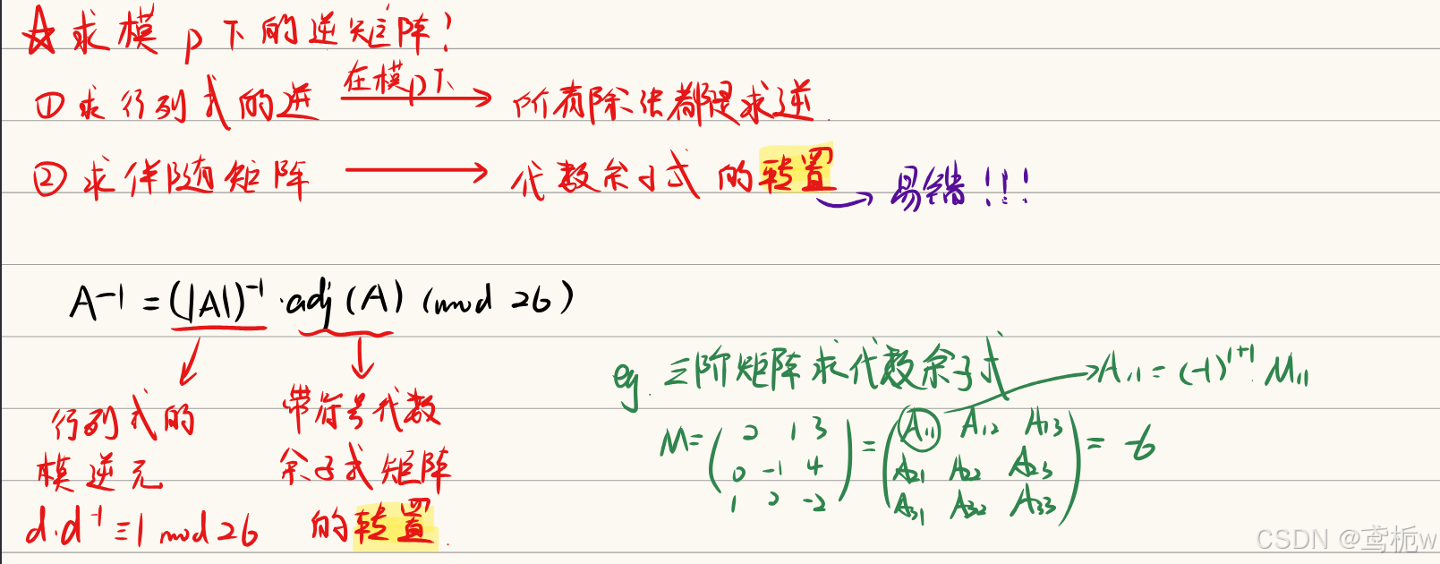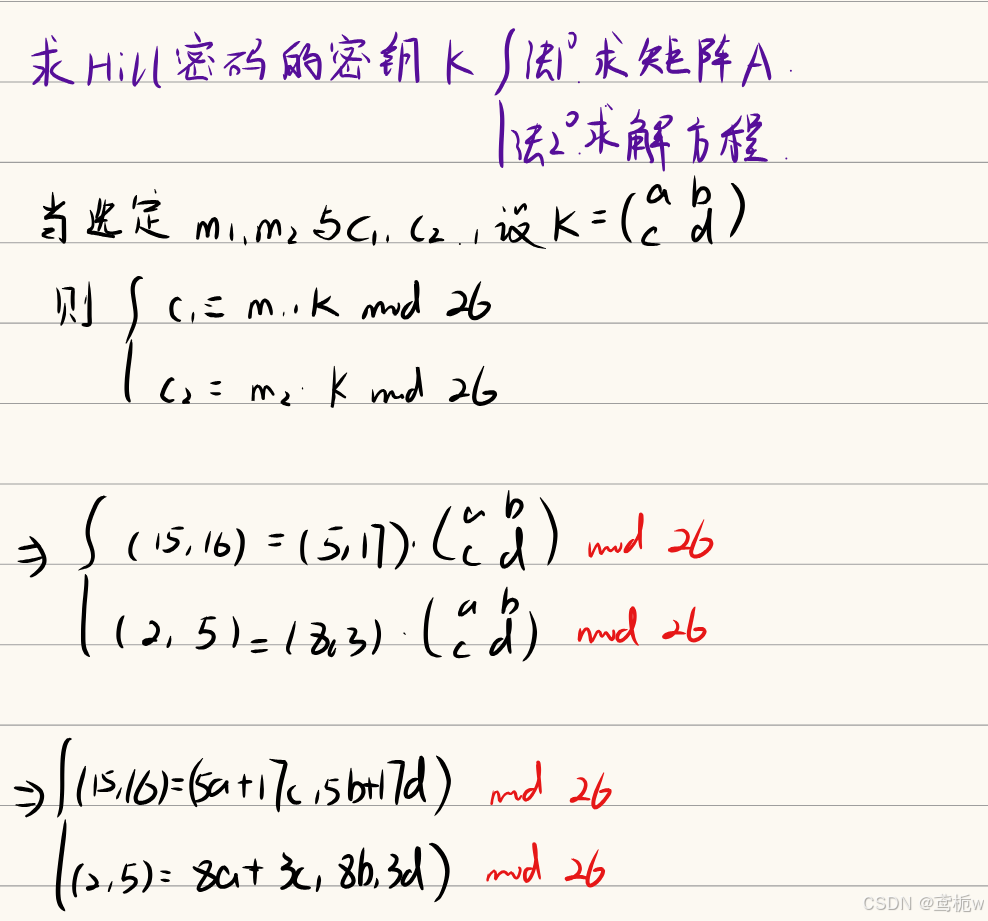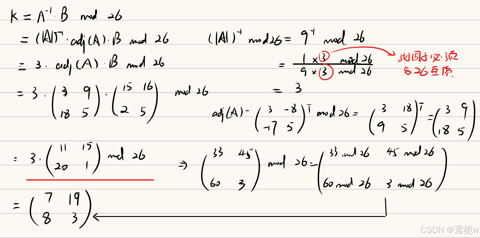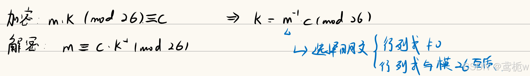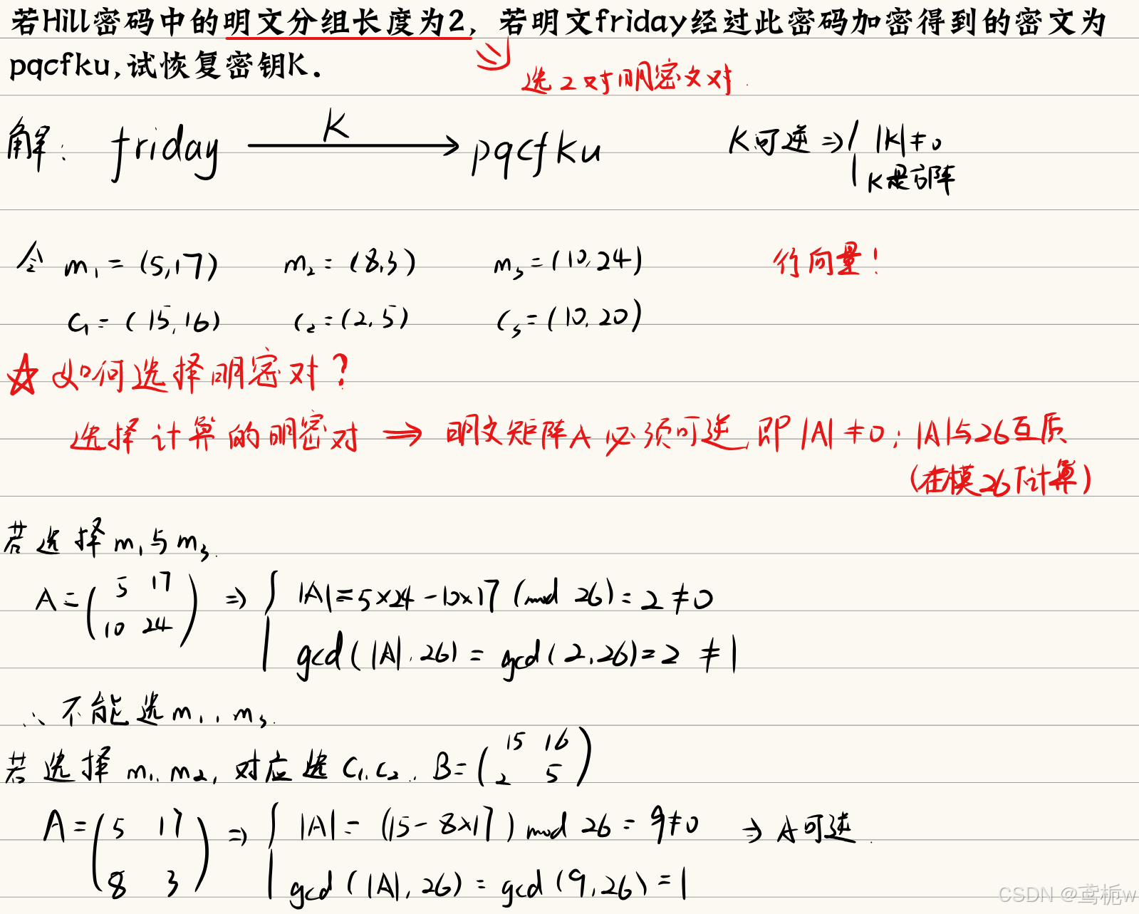 注:这里明密文使用行向量,如果使用列向量,答案应该与使用行向量不同