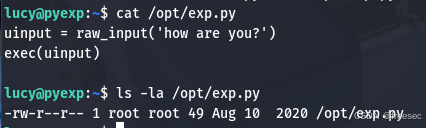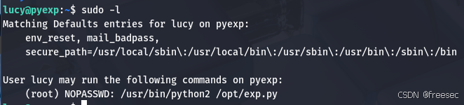 - 滥用 sudo 权限使用易受攻击的脚本 /opt/exp.py 执行 /usr/bin/python2。