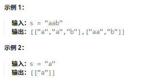 class Solution {//保持前几题一贯的格式, initializationList<List<String>> res = new ArrayList<>();List<String> cur = new ArrayList<>();public List<List<String>> partition(String s) {backtracking(s, 0, new StringBuilder());return res;}private void backtracking(String s, int start, StringBuilder sb){//因为是起始位置一个一个加的,所以结束时start一定等于s.length,//因为进入backtracking时一定末尾也是回文,所以cur是满足条件的if (start == s.length()){//注意创建一个新的copyres.add(new ArrayList<>(cur));return;}//像前两题一样从前往后搜索,如果发现回文,//进入backtracking,起始位置后移一位,循环结束照例移除cur的末位for (int i = start; i < s.length(); i++){sb.append(s.charAt(i));if (check(sb)){cur.add(sb.toString());backtracking(s, i + 1, new StringBuilder());cur.remove(cur.size() -1 );}}}//helper method, 检查是否是回文private boolean check(StringBuilder sb){for (int i = 0; i < sb.length()/ 2; i++){if (sb.charAt(i) != sb.charAt(sb.length() - 1 - i)){return false;}}return true;}