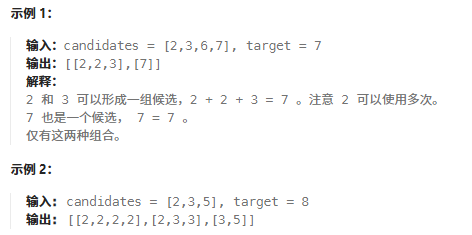 中的 同一个 数字可以 无限制重复被选取 。如果至少一个数字的被选数量不同,则两种组合是不同的。对于给定的输入,保证和为