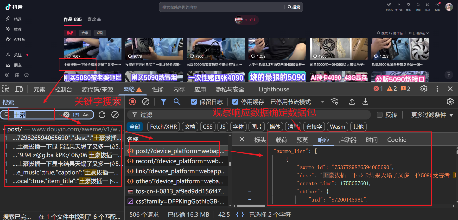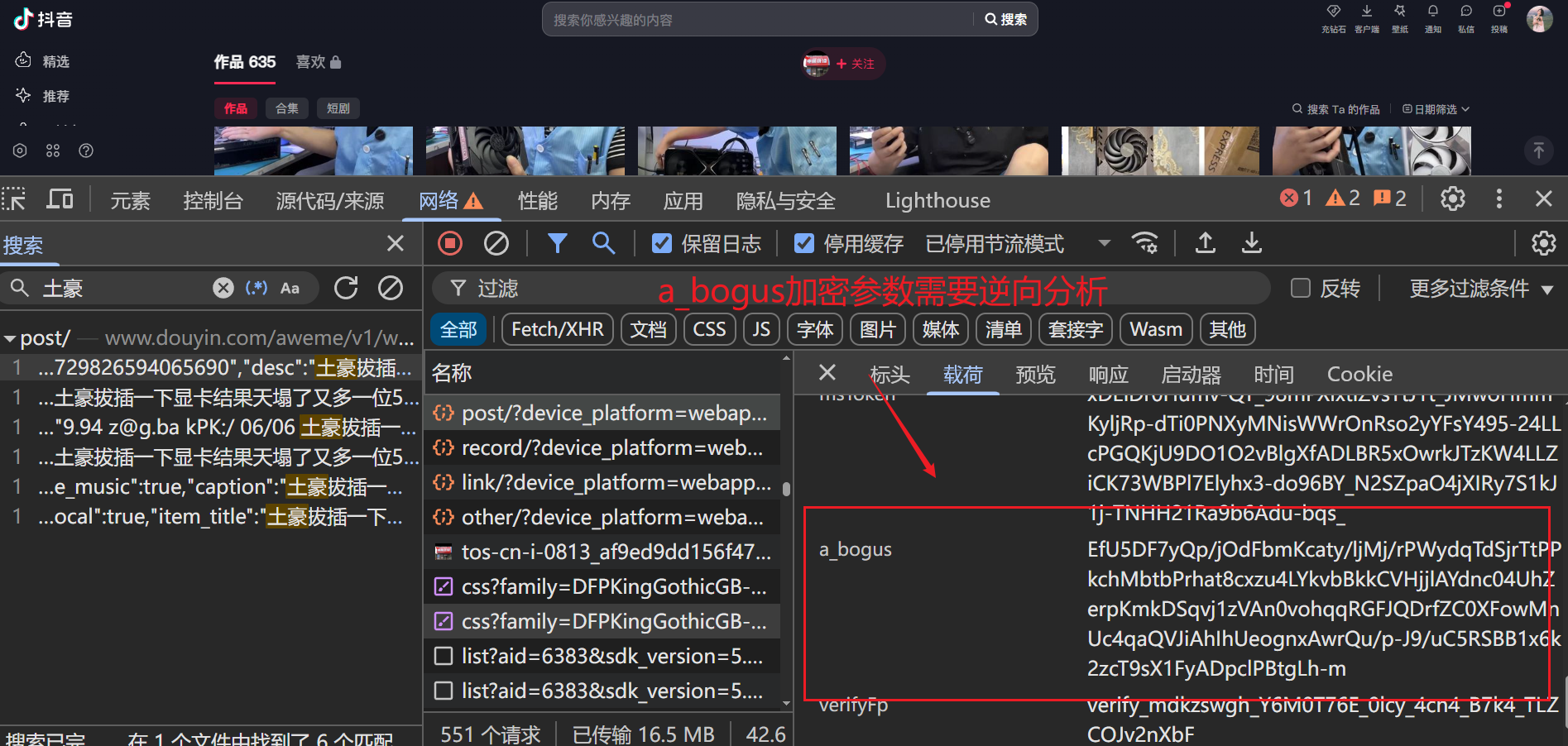 概述 本技术文档详细记录了针对抖音Web端反爬机制中a_bogus参数的逆向工程过程。该参数是抖音API请求中的关键加密参数,用于验证请求的合法性。通过完整的环境模拟和Hook技术,我们成功实现了该参数的本地生成。 网页分析
