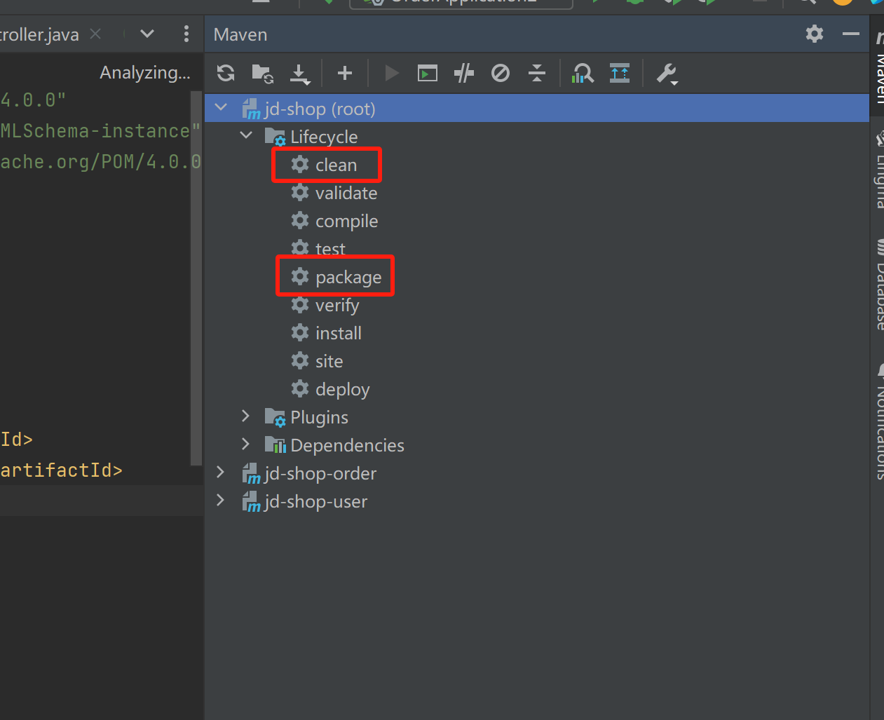 使用idea软件中的maven工具进行打包,在target文件夹下找到打包的文件,修改名称为项目工程名称