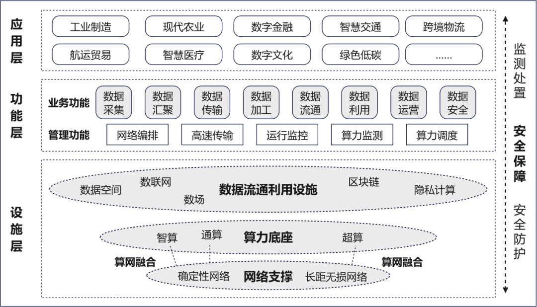 数据空间作为国家数据基础设施,覆盖数据采集、汇聚、传输、加工、流通、利用、运营、安全全链条,其核心功能可概括为“三通一平”。通过高速通信网络、隐私计算、区块链等技术的综合应用,构建可信的数据流通环境,打破数据孤岛,实现数据要素在更大范围的高效配置。例如,中国气象局利用气象科学数据共享平台,面向全球132个国家、全国21个行业提供数据产品,支撑800多项国家重点计划,充分发挥了数据空间作为国家数据基础设施的关键作用。