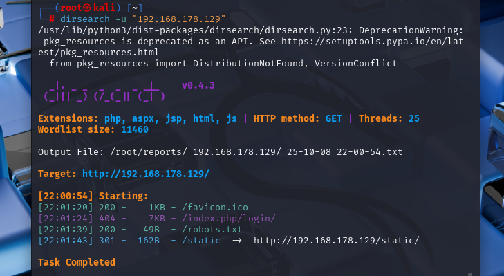 dirsearch -u "192.168.178.129"